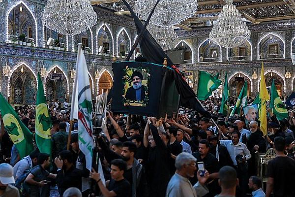 تصاویری از تشییع نمادین سیدحسن نصرالله در عراق