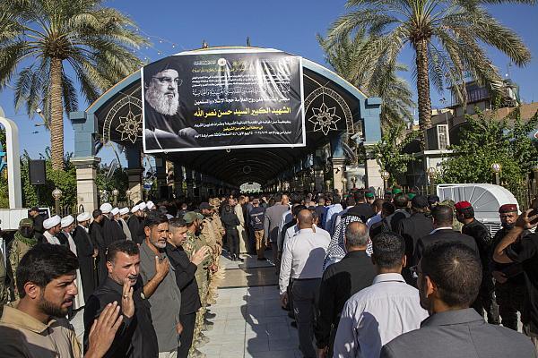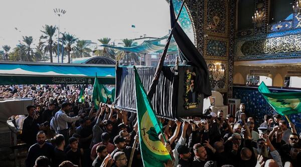 مراسم تشییع نمادین و مراسم یادبود سیدحسن نصرالله، دبیرکل فقید حزب‌الله لبنان به همت آستان‌های حسینی و عباسی در کربلا برگزار شد.