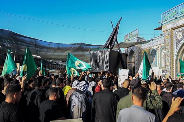 تشییع نمادین و مراسم یادبود سیدحسن نصرالله در کربلا + عکس