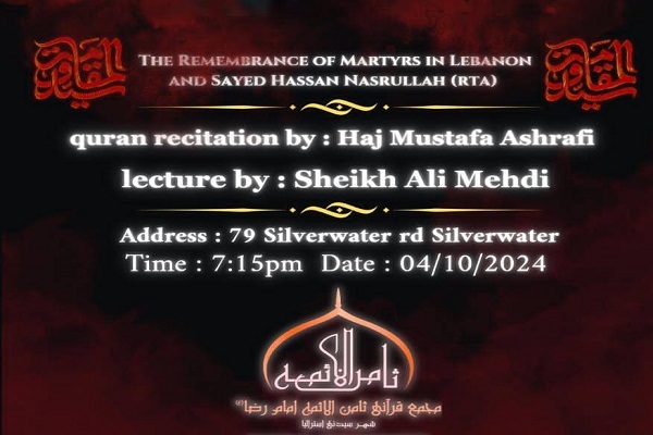 وی افزود: این مراسم با هدف تکریم شهدای فلسطین ولبنان و در رأس آنها شهید مقاومت سیدحسن نصرالله برگزار شد و «شیخ علی مهدی»، از روحانیون شیعی استرالیا در این مراسم سخنرانی کرد.