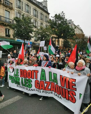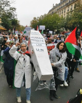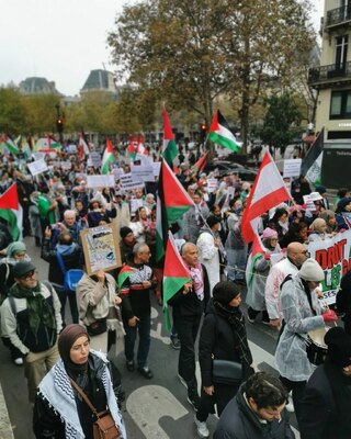 حامیان فلسطین در میدان جمهوری تجمع و سپس با سردادن شعارهایی در محکومیت قتل عام اسرائیل به سمت میدان باستیل راهپیمایی کردند.