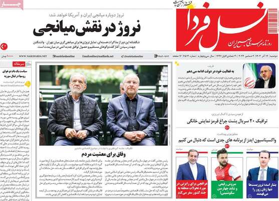 صفحه نخست روزنامههای دوشنبه ۱۲ آذر ۱۴۰۳ را که به وفاق دولت و ملت برای معیشت مردم، حضور وزیر امور خارجه در دمشق و مهمترین رویدادهای ورزشی پرداختهاند؛ در ادامه مشاهده میکنید.