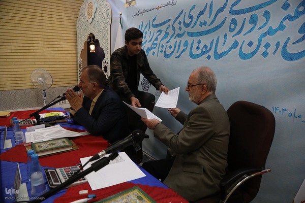 اعضای هیئت داوران بخش نغمات دینی چهل‌وهفتمین مسابقات قرآن آقایان ،که شامل رشته‌های اذان، دعاخوانی، هم خوانی و مدیحه سرایی را قضاوت می‌کنند‌. مسابقات بخش آقایان از 20 تا 29 آذر در مصلی امام خمینی(ره) تبریز در حال برگزاری است.