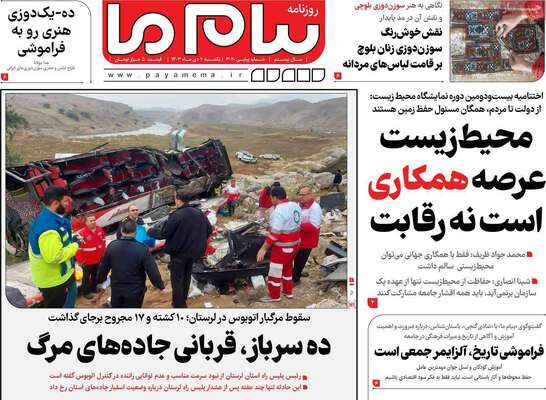 صفحه نخست روزنامههای یکشنبه ۲ دی ۱۴۰۳ را که به سد معبر پیشرفت، مدیریت مادرانه، ساخت ایران با جوانان و مهمترین رویدادهای ورزشی پرداختهاند؛ در ادامه مشاهده میکنید.