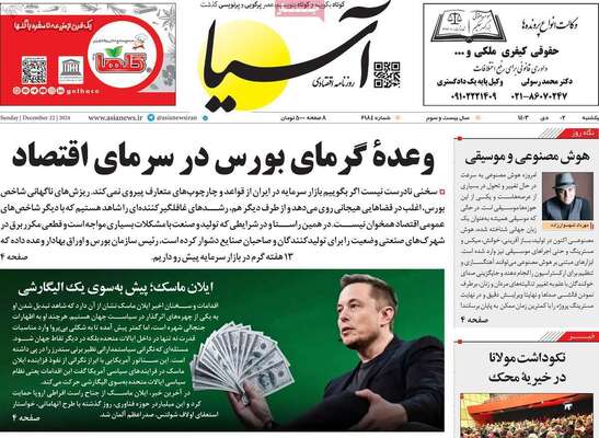 صفحه نخست روزنامههای یکشنبه ۲ دی ۱۴۰۳