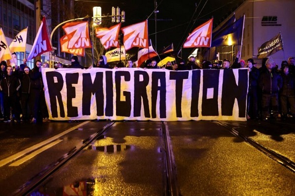 معترضان که برخی از آن‌ها نقاب سیاه پوشیده بودند، در حالی که یک بنر بزرگ با عبارت «بازگرداندن مهاجران» حمل می‌کردند، خواستار اخراج دسته جمعی مهاجران و کسانی که نژاد آلمانی ندارند، شدند.