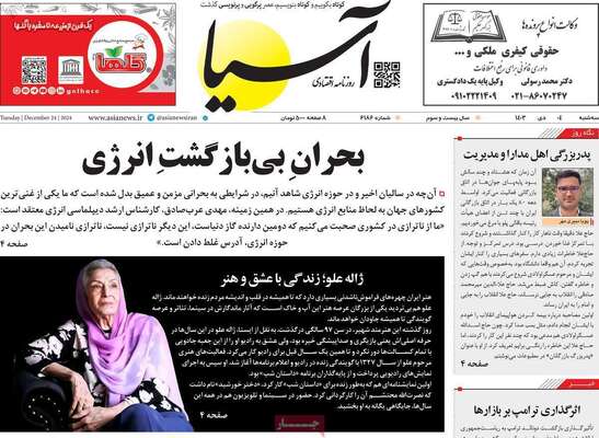 صفحه نخست روزنامههای سهشنبه ۴ دی ۱۴۰۳