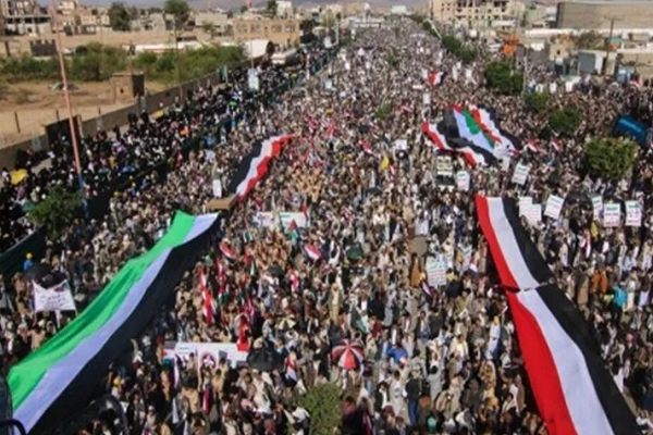تظاهراتکنندگان یمنی پرچمهای فلسطین، یمن و لبنان و پلادکاردهایی را در دست داشتند که در آن بر موضع ثایت یمنیها در حمایت از غزه و محکومیت نسلکشی رژیم صهیونیستی تأکید شده بود.