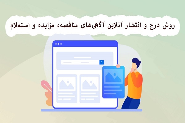 اولین اقدام برای انتشار آگهی در سامانه این است که درخواست خود را اعلام کنید. درخواست انتشار آگهی با تکمیل فرم صورت میگیرد. در فرم مورد نظر باید نام و نام خانوادگی یا نام شرکت، شماره تماس، نوع آگهی که میتواند مناقصه، مزایده یا استعلام بها باشد، استان، مهلت شرکت در آگهی، عنوان آگهی، شرح مختصری در خصوص موضوع مورد نظر، درج شود و بارگذاری تصاویر اسناد نیز صورت گیرد. با ارسال فرم تکمیل شده، کارشناسان آن را مورد بررسی قرار میدهند و در صورت تایید در دستهبندی مناسب منتشر میشود.