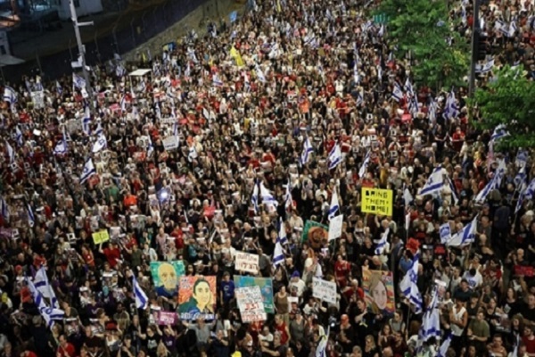 هزاران نفر از ساکنان سرزمین‌های اشغالی در پی انتشار ویدئویی از یک گروگان اسرائیلی، علیه نخست‌وزیر رژیم صهیونیستی دست به تظاهرات زدند.