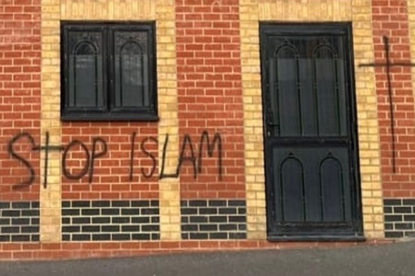 درج شعارهای ضد اسلامی بر روی دیوار مساجد و مدارس اسلامی لندن
