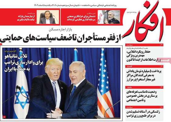 صفحه نخست روزنامههای یکشنبه ۵ اسفند ۱۴۰۳