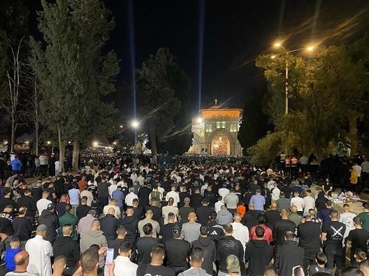 به گزارش ایکنا به نقل از خبرگزاری فلسطینی وفا، اداره اوقاف اسلامی قدس اشغالی اعلام کرد: 100 هزار نفر از نمازگزاران در بیست و هشتمین روز از ماه مبارک رمضان در مسجدالاقصی نماز عشاء و تراویح را اقامه و ختم قرآن کردند.