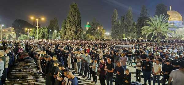 شامگاه جمعه 8 فروردین ماه، 100 هزار نفر از نمازگزاران فلسطینی نماز عشاء و تراویح را در مسجد الاقصی اقامه کرده و قرآن کریم را ختم کردند.