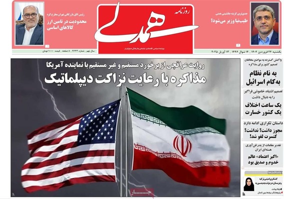 صفحه نخست روزنامههای یکشنبه ۲۴ فروردین ۱۴۰۴