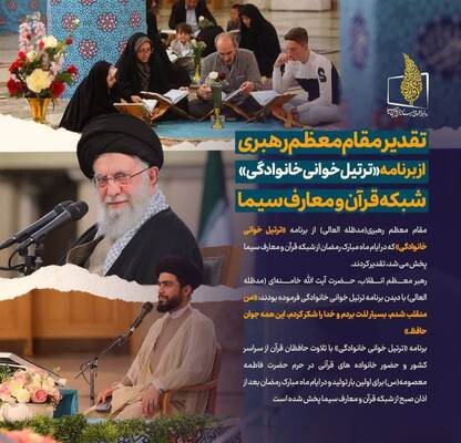 به گزارش ایکنا به نقل از روابط عمومی و رسانههای نوین معاونت سیما، رهبر معظم انقلاب حضرت آیتالله خامنهای (مدظلهالعالی) با دیدن برنامه «ترتیلخوانی خانوادگی» فرموده بودند: «من منقلب شدم، بسیار لذت بردم و خدا را شکر کردم، این همه جوان حافظ!»