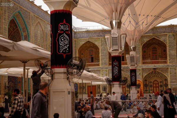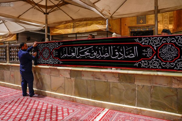 در همین راستا، خادمان بخش انتظامات آستان مقدس عباسی نیز پرچمهای حزن و عزا به منظور بزرگداشت سالروز شهادت امام جعفر صادق(ع) در حرم عباسی نصب کردند.