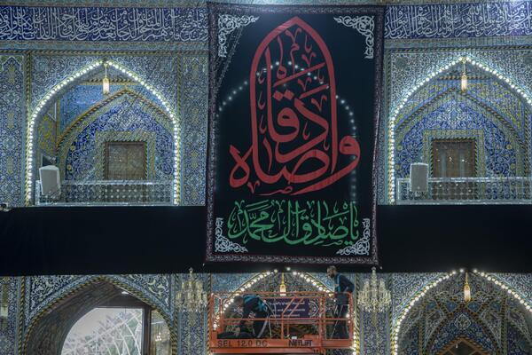 به گزارش ایکنا، صحن و سرای امام علی(ع)، به مناسبت سالروز شهادت امام جعفر صادق(ع) فردا، چهارم اردیبهشت، با نصب کتیبههای سیاه، سیاهپوش شد.