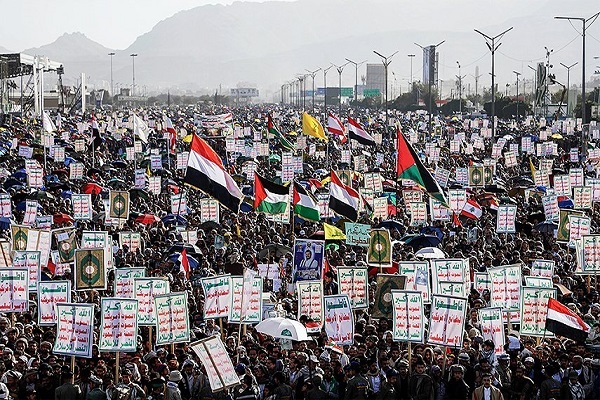 این حضور انبوه در راهپیمایی با نام «ثابت قدم با غزه» با وجود حملات گسترده آمریکا و جنایات آن انجام شد.