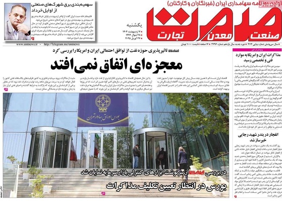 صفحه نخست روزنامههای یکشنبه ۷ اردیبهشت ۱۴۰۴