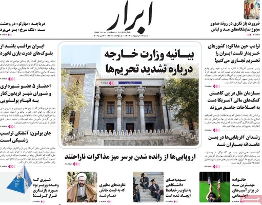 صفحه اول روزنامه ها