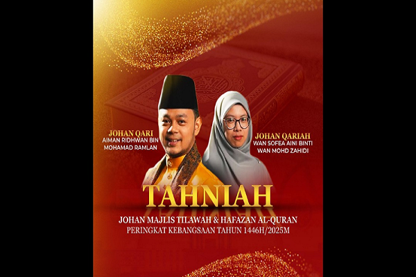 ایمان رضوان و وان صوفیه عینی در مسابقات ملی تلاوت و حفظ قرآن (MTQHK) 1446هـ/2025 که روز جمعه در کنگار، پرلیس به پایان رسید به مقامهای اول رسیدند.