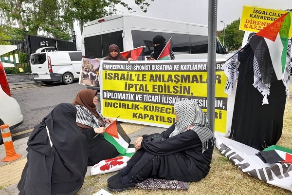 این گروه از زنان مسلمان و اعضای انجمن «رنگین کمان» در آدانا، در حمایت از مقاومت مردم فلسطین در غزه، روز گذشته، 6 خرداد مقابل ساختمان ریاست جمهوری در آنکارا، پایتخت این کشور، همبستگی خود را با مادران فلسطینی داغدار کودکان شهید ابراز کردند.