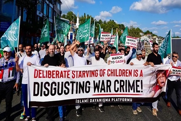 آنها شعارهایی در محکومیت طرحهای آوارگی فلسطینیان و رد گرسنگی تحمیلی اسرائیل بر نوار غزه سر دادند و خواستار ورود فوری کمکهای بشردوستانه و پایان قحطی شدند.