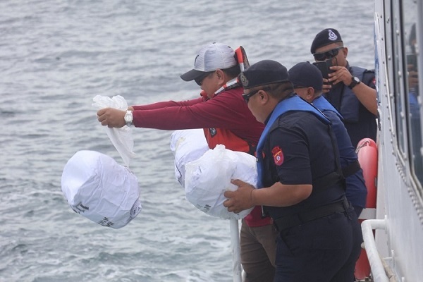 کیسههای کاغذی زیستتخریبپذیر حاوی قرآن، در مراسمی که در اسکله بندر بینتولو، در ایالت ساراواک مالزی برگزار شد، با احترام در دریا رها شدند.