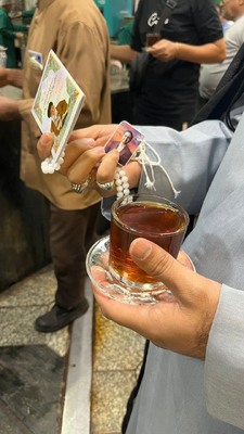 در این مراسم باشکوه، کیک تولدی به یاد شهید برش زده و به همراه تسبیح‌های زیبا میان زائران توزیع شد. این اقدام نمادی از پیوند روحانی و معنوی شهید با زائران و مردم بود. چهره‌های متأثر و اشک‌های شوق و افتخار، فضای مراسم را آکنده از عطر محبت و صبر کرده بود.
