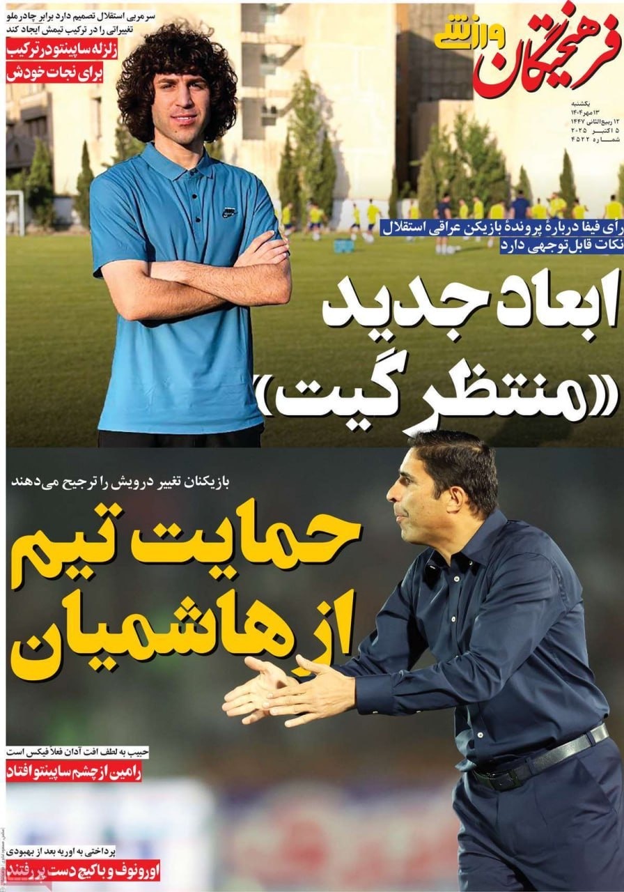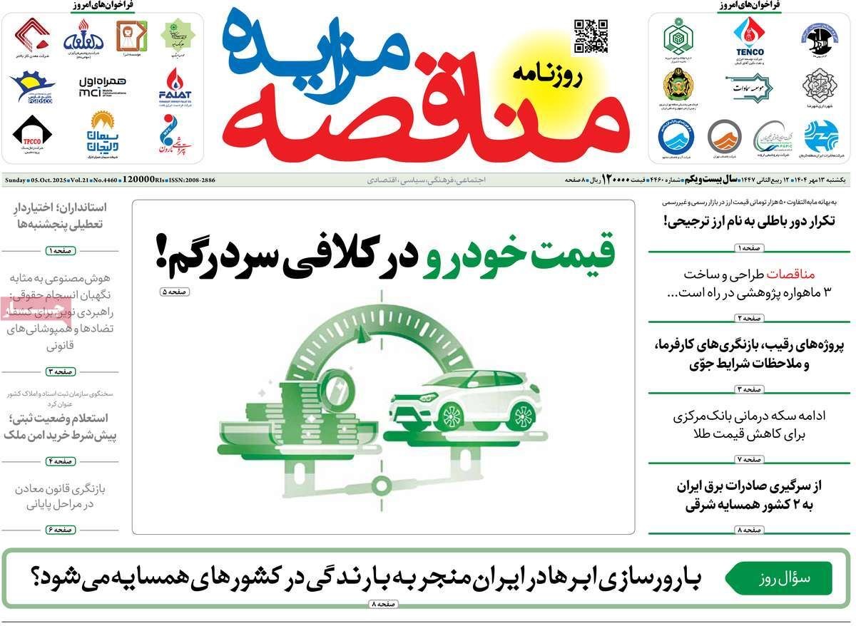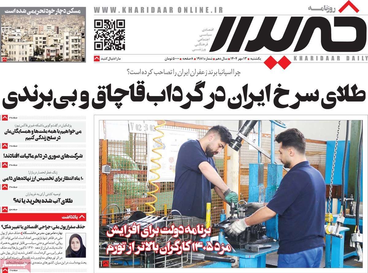 صفحه نخست روزنامههای یکشنبه ۱۳ مهر ۱۴۰۴