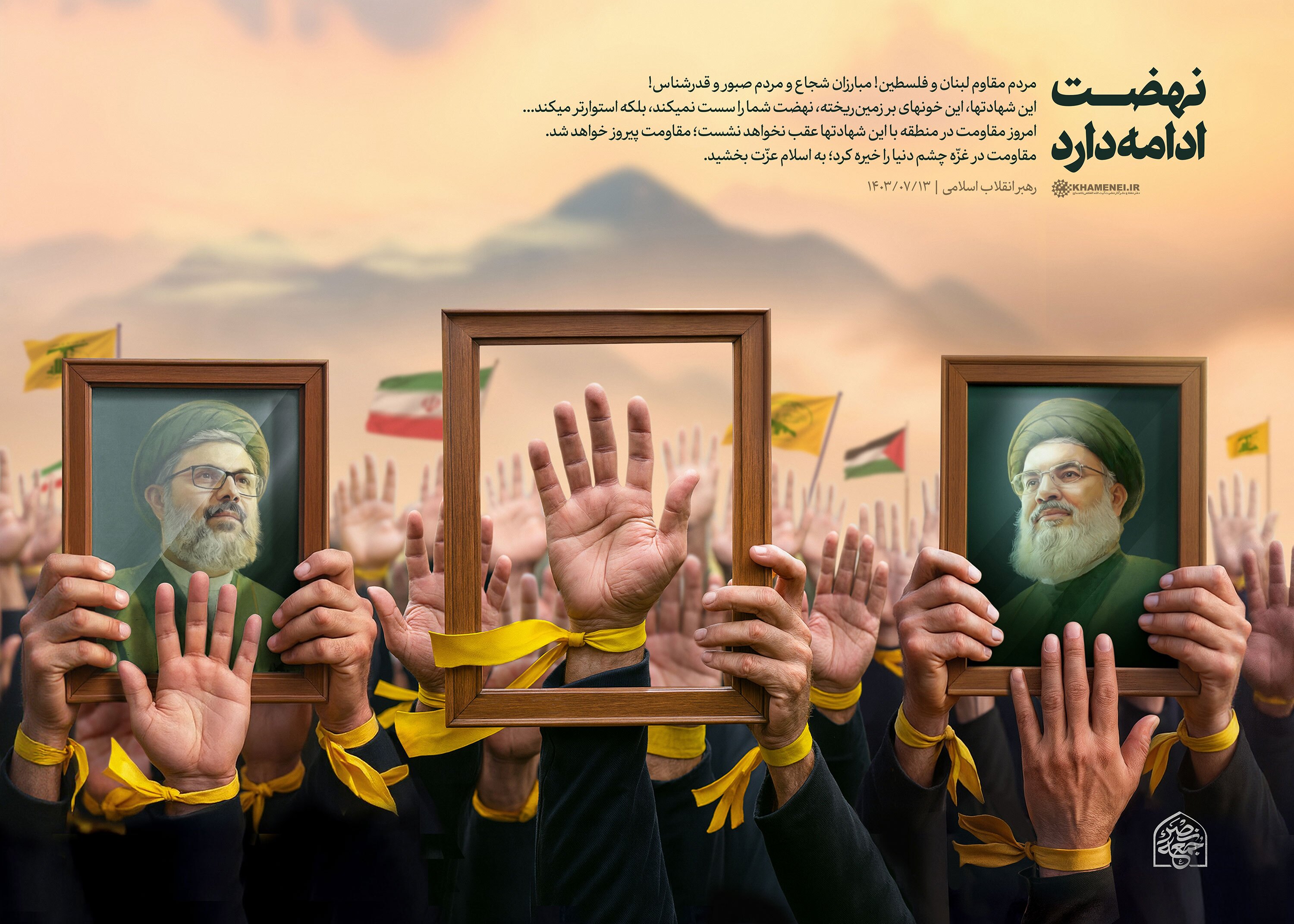 مردم مقاوم لبنان و فلسطین! مبارزان شجاع و مردم صبور و قدرشناس! این شهادت‌ها، این خون‌های بر زمین‌ریخته، نهضت شما را سست نمی‌کند، بلکه استوارتر می‌کند... امروز مقاومت در منطقه با این شهادت‌ها عقب نخواهد نشست؛ مقاومت پیروز خواهد شد. مقاومت در غزّه چشم دنیا را خیره کرد؛ به اسلام عزّت بخشید. [رهبر معظم انقلاب، ۱۴۰۳/۰۷/۱۳]