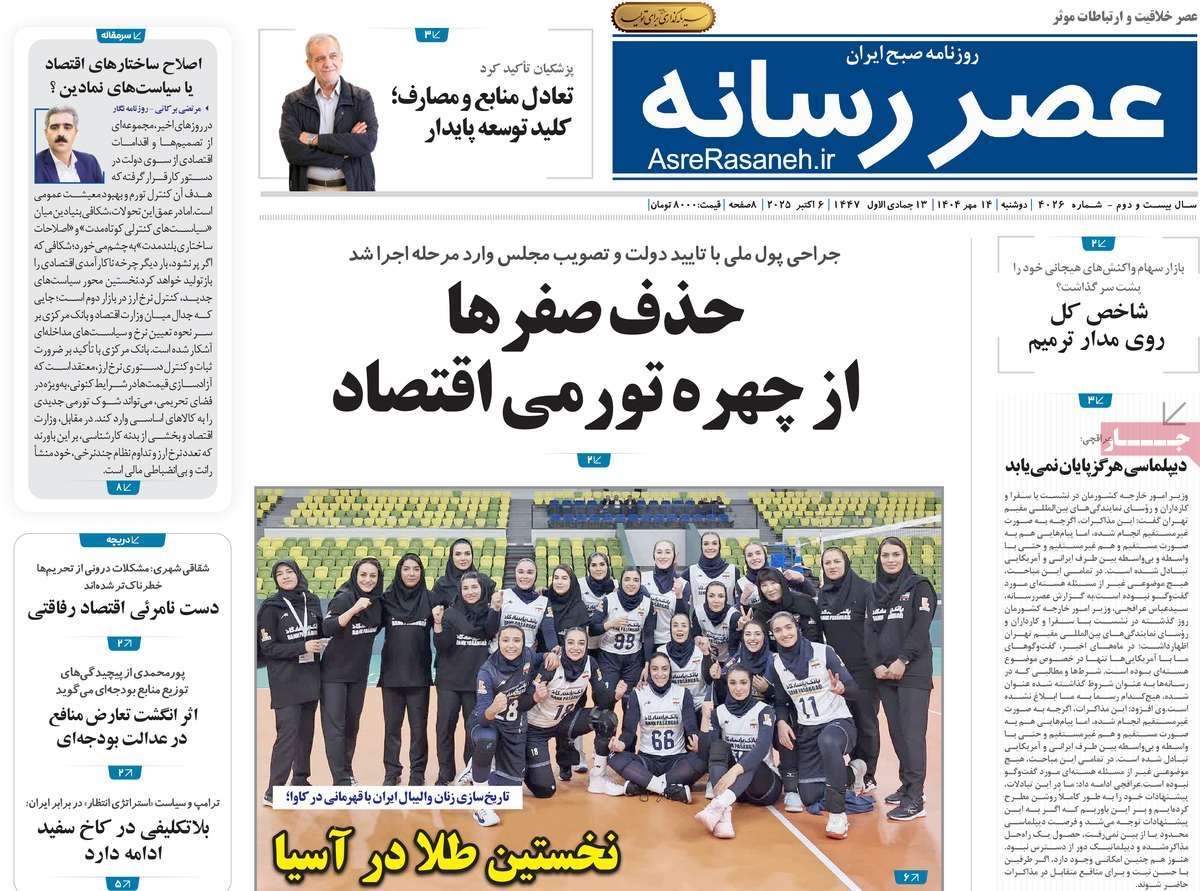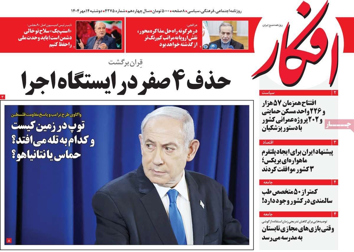 صفحه نخست روزنامههای دوشنبه ۱۴ مهر ۱۴۰۴ را که به اقتصاد ایران در چالش صفرها، زنگ خطر بزرگ زمین، اشک تمساح برای غزه و مهمترین رویدادهای ورزشی پرداختهاند؛ در ادامه مشاهده میکنید.