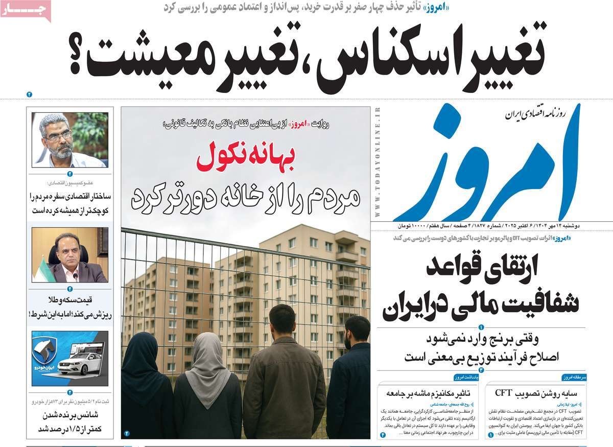صفحه نخست روزنامههای دوشنبه ۱۴ مهر ۱۴۰۴
