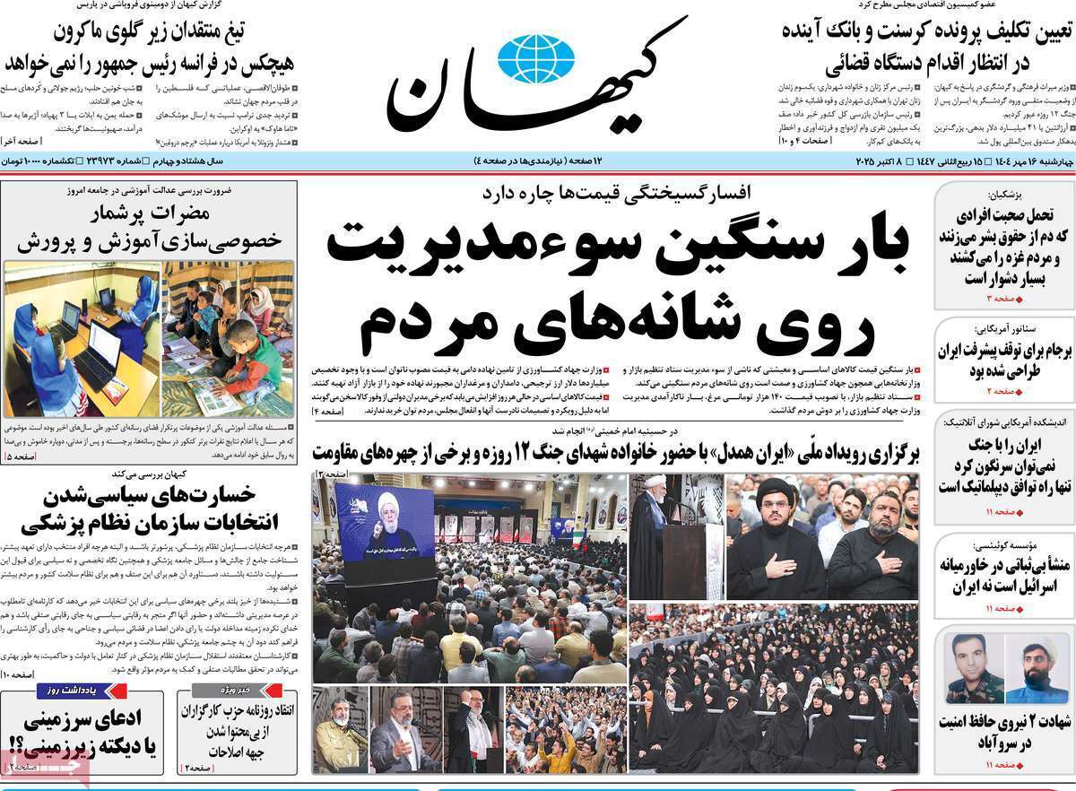 صفحه نخست روزنامههای چهارشنبه ۱۶ مهر ۱۴۰۴