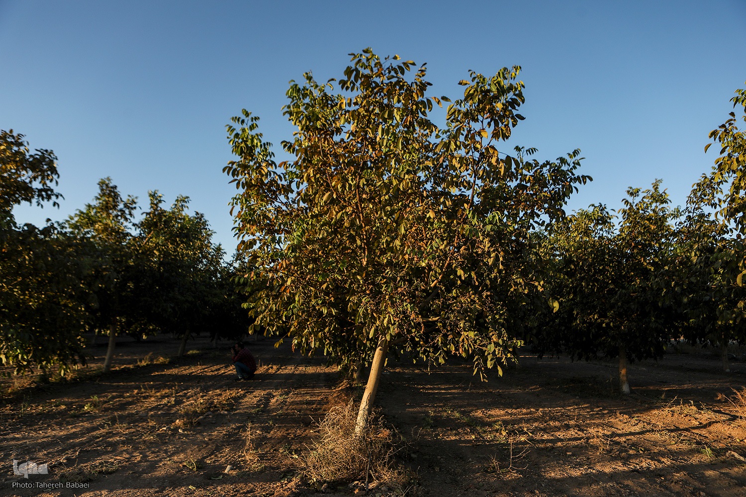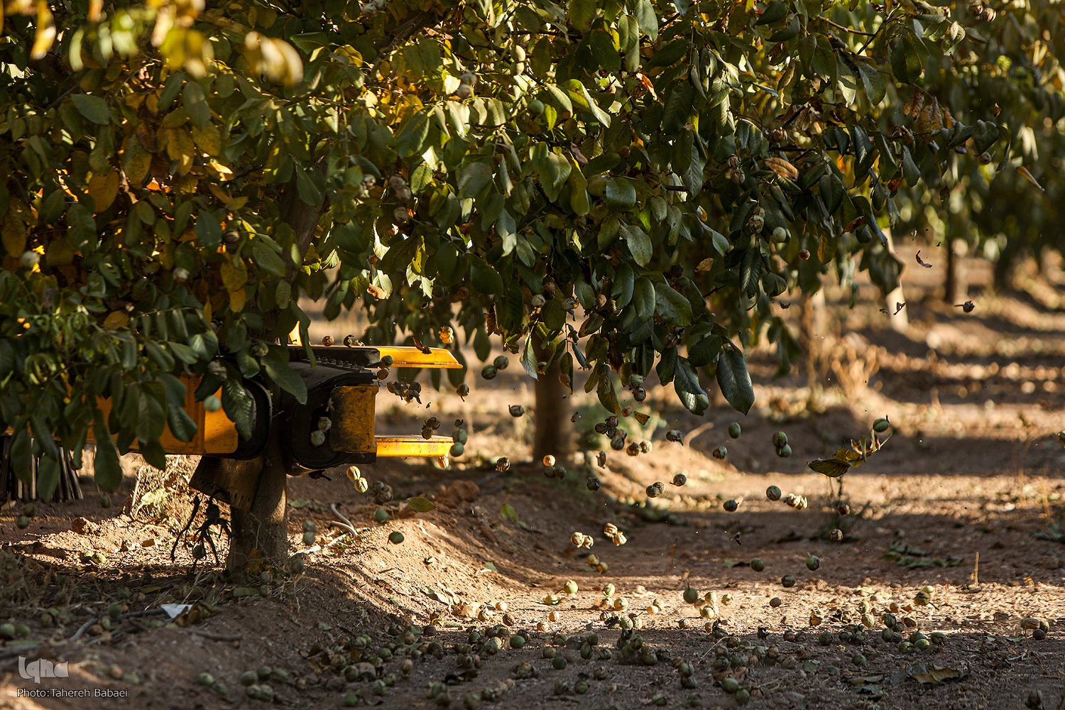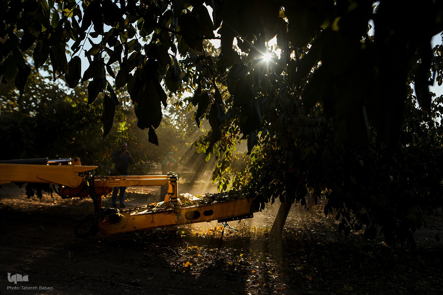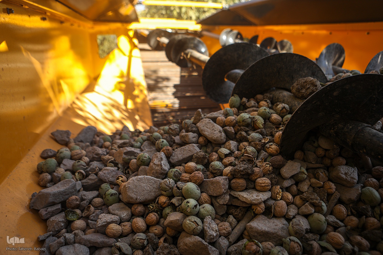 برداشت گردو اصلاح شده با دستگاه مکانیزه