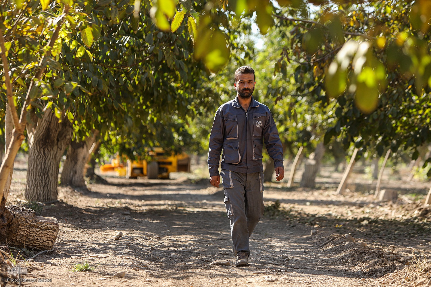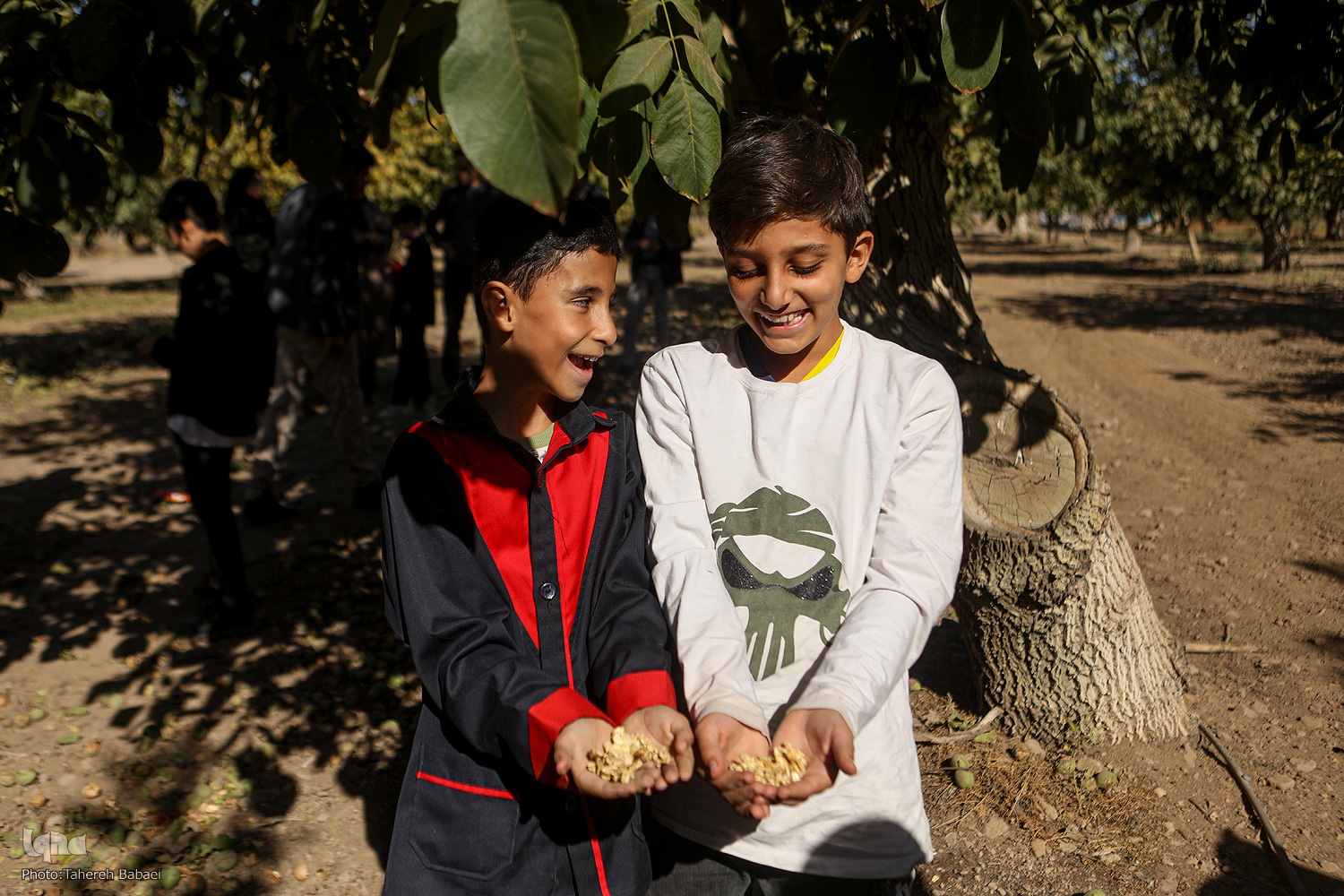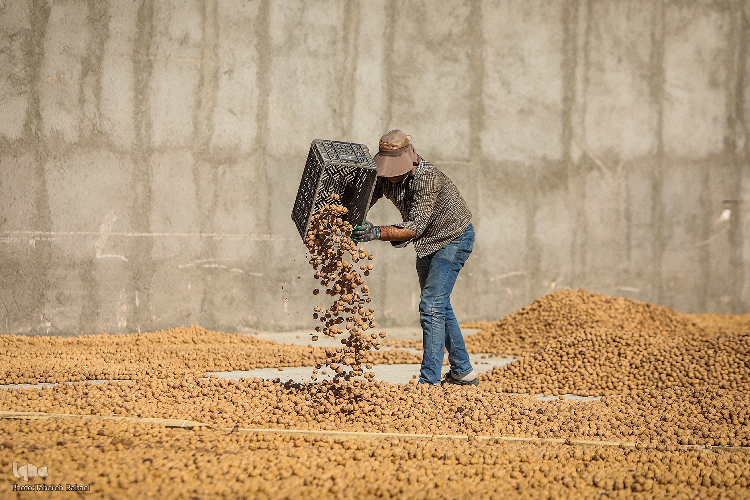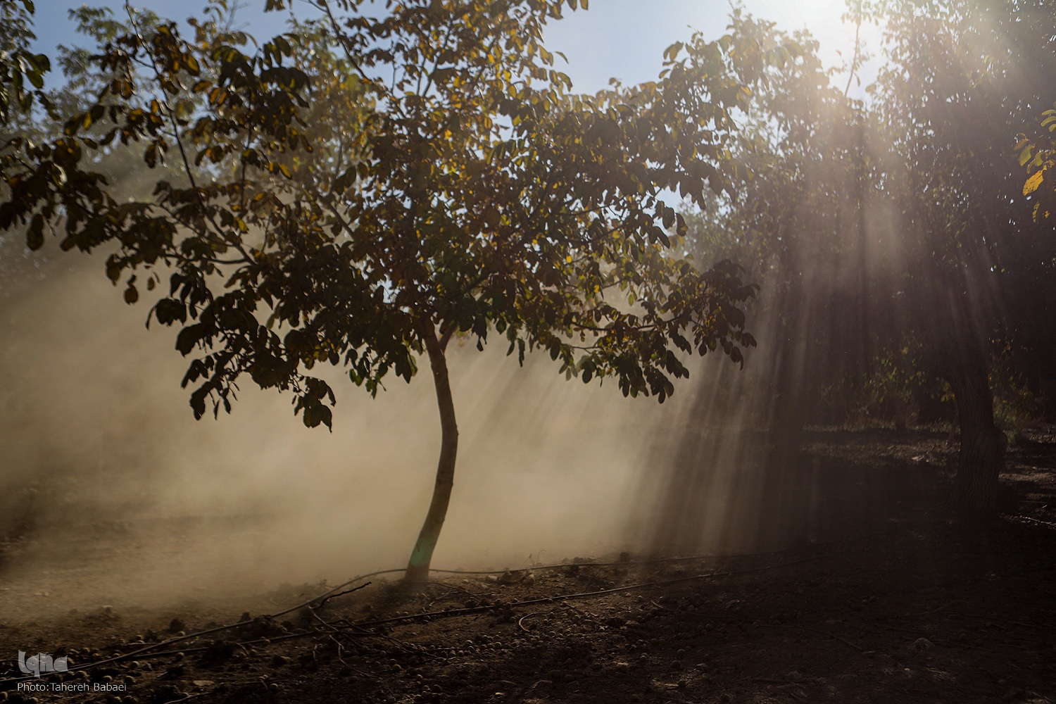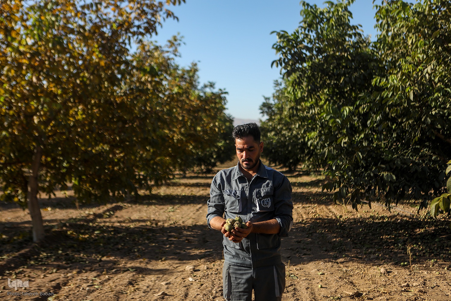 برداشت گردو اصلاح شده با دستگاه مکانیزه