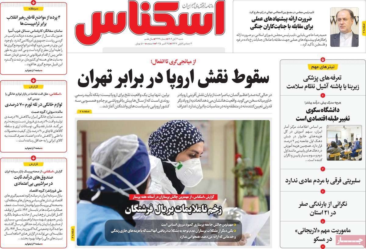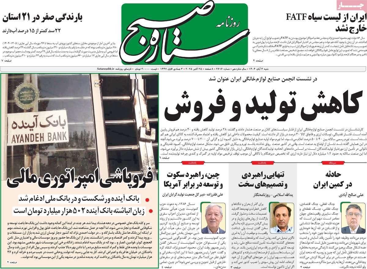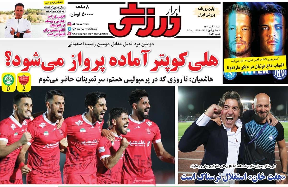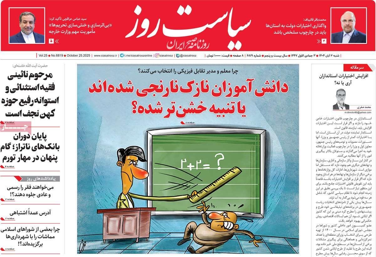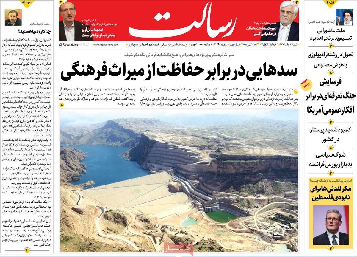 صفحه نخست روزنامههای شنبه ۳ آبان ۱۴۰۴