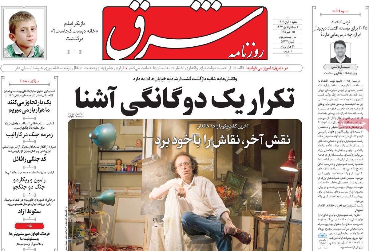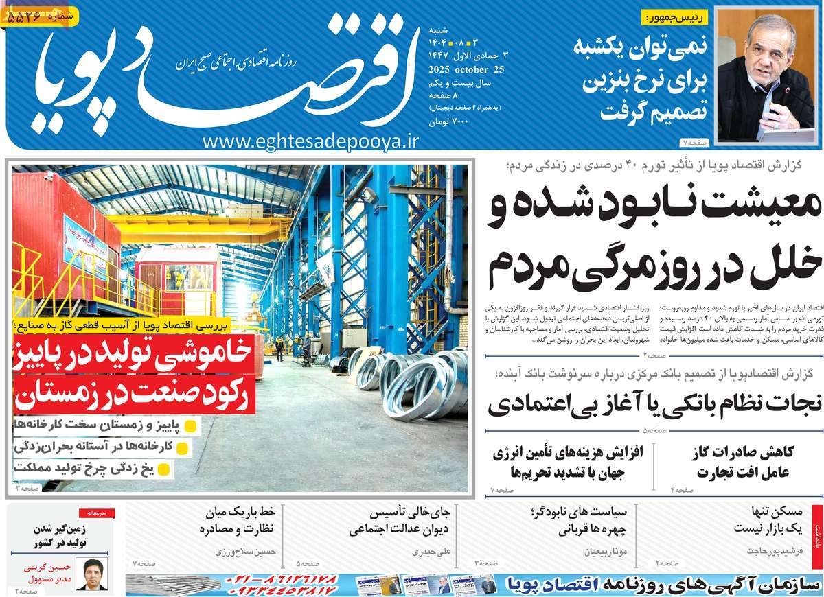 صفحه نخست روزنامههای یکشنبه ۴ آبان ۱۴۰۴