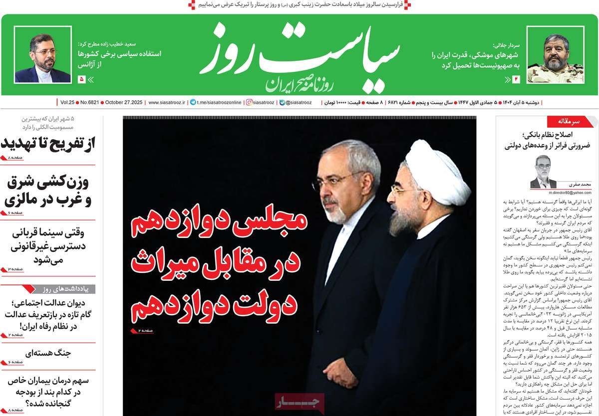 صفحه نخست روزنامههای سهشنبه ۶ آبان ۱۴۰۴