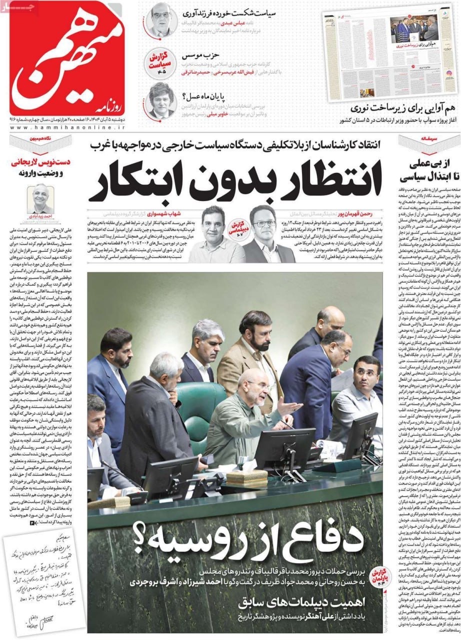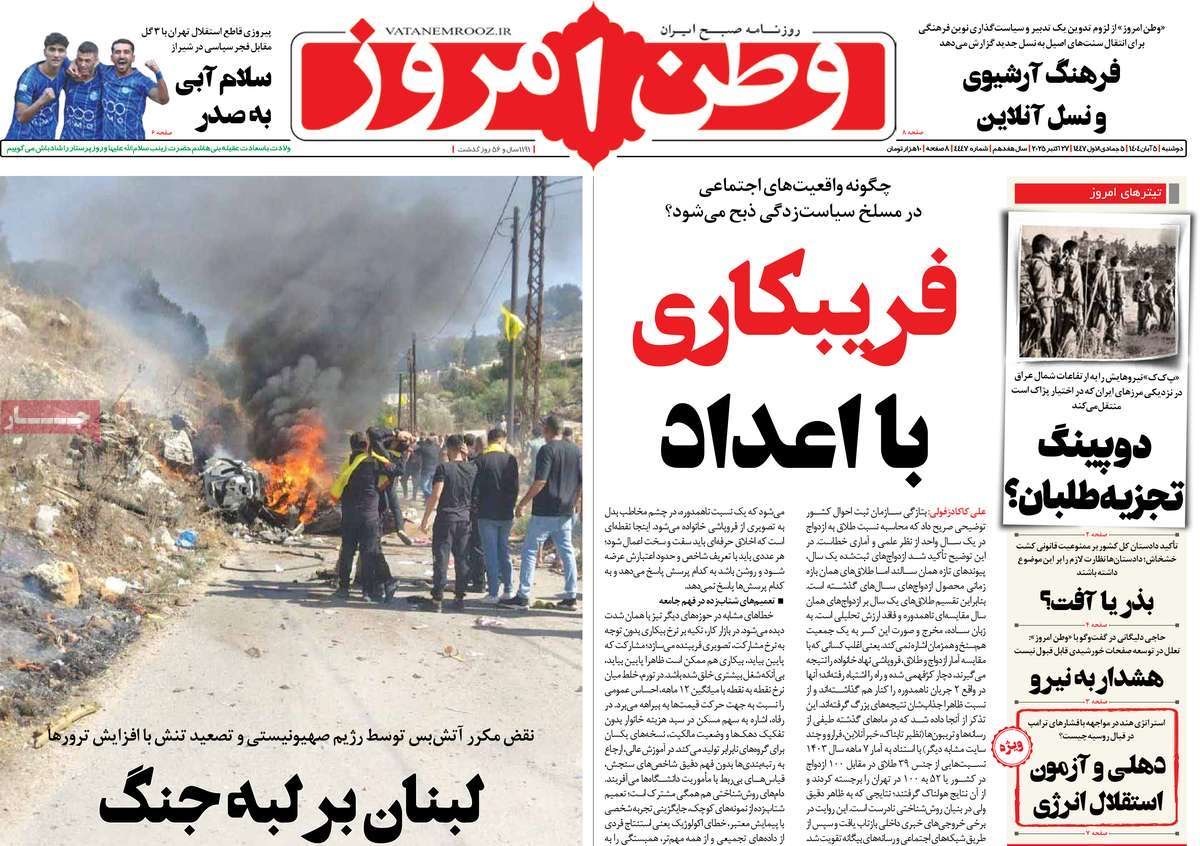 صفحه نخست روزنامههای دوشنبه ۵ آبان ۱۴۰۴