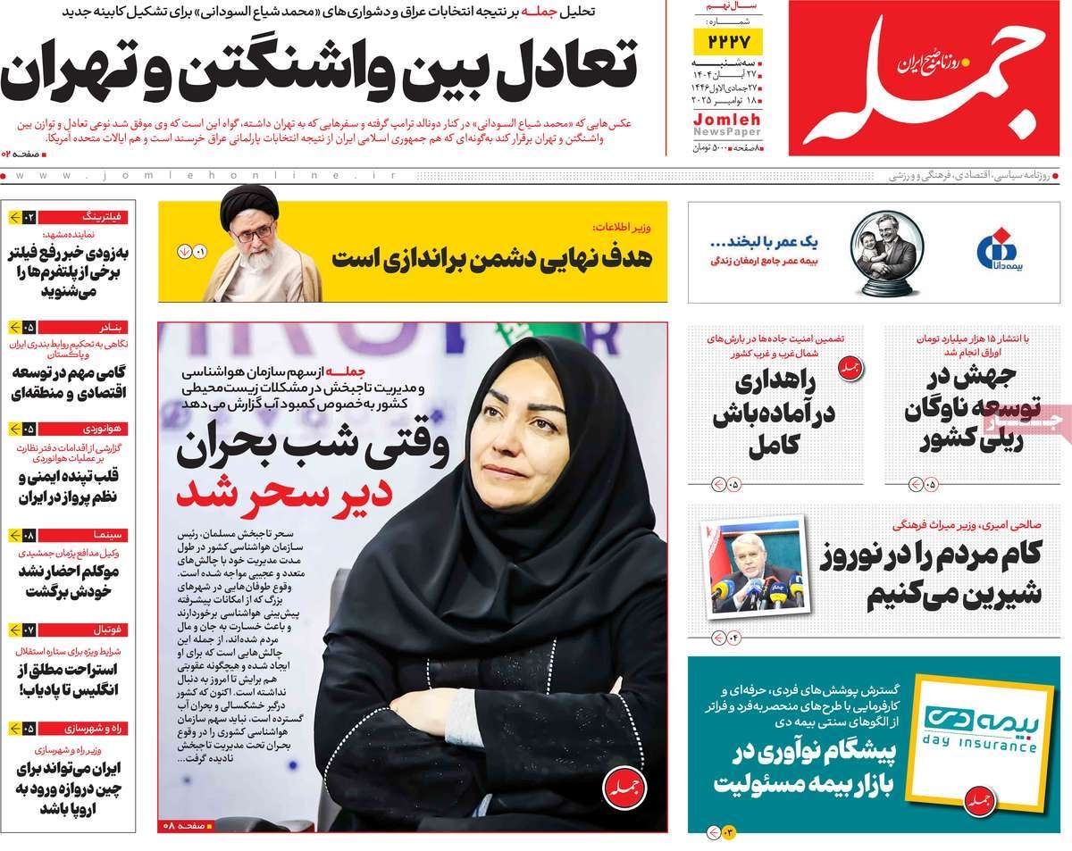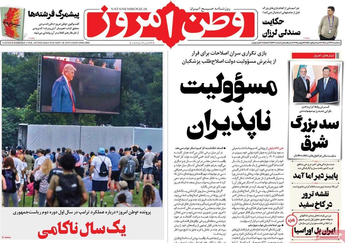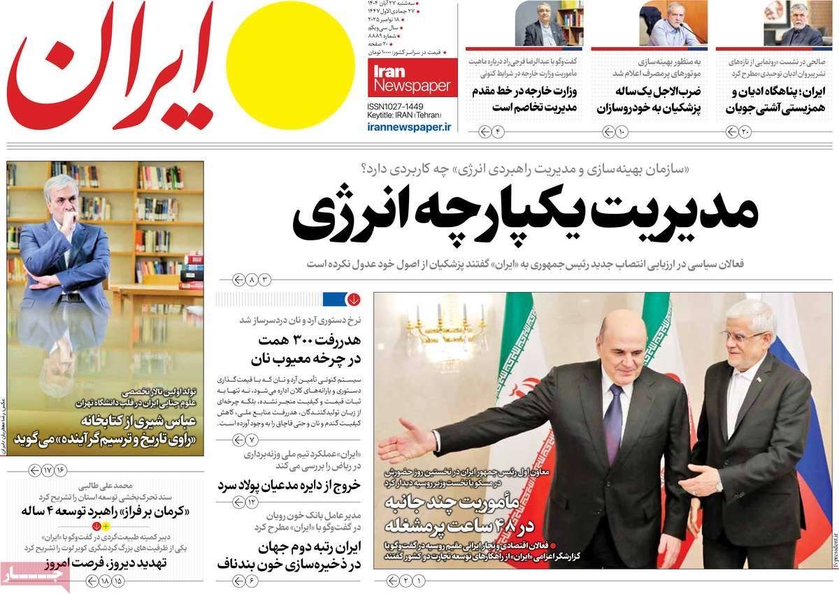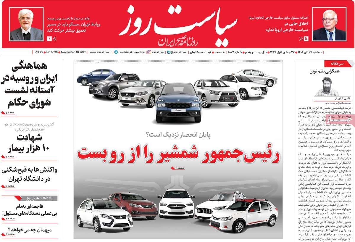 صفحه نخست روزنامههای سهشنبه ۲۷ آبان ۱۴۰۴
