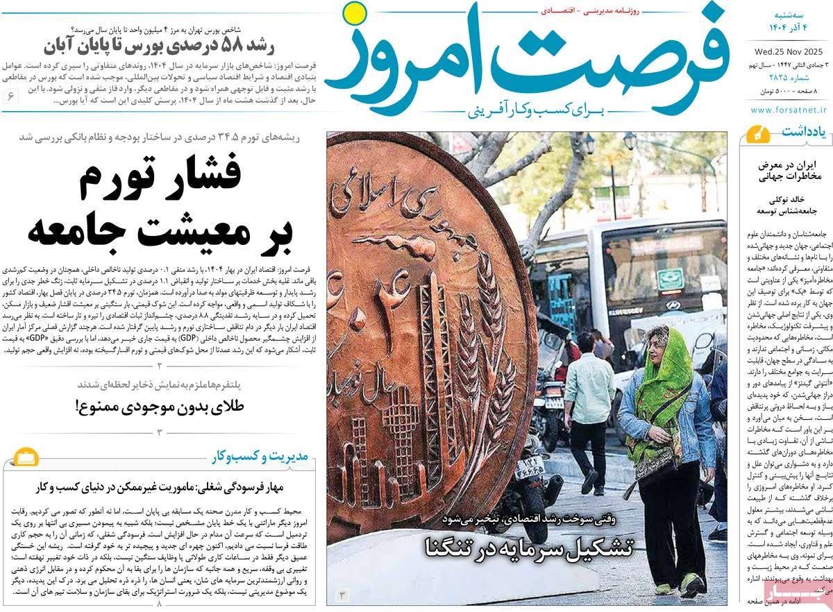 صفحه نخست روزنامههای سهشنبه ۴ آذر ۱۴۰۴