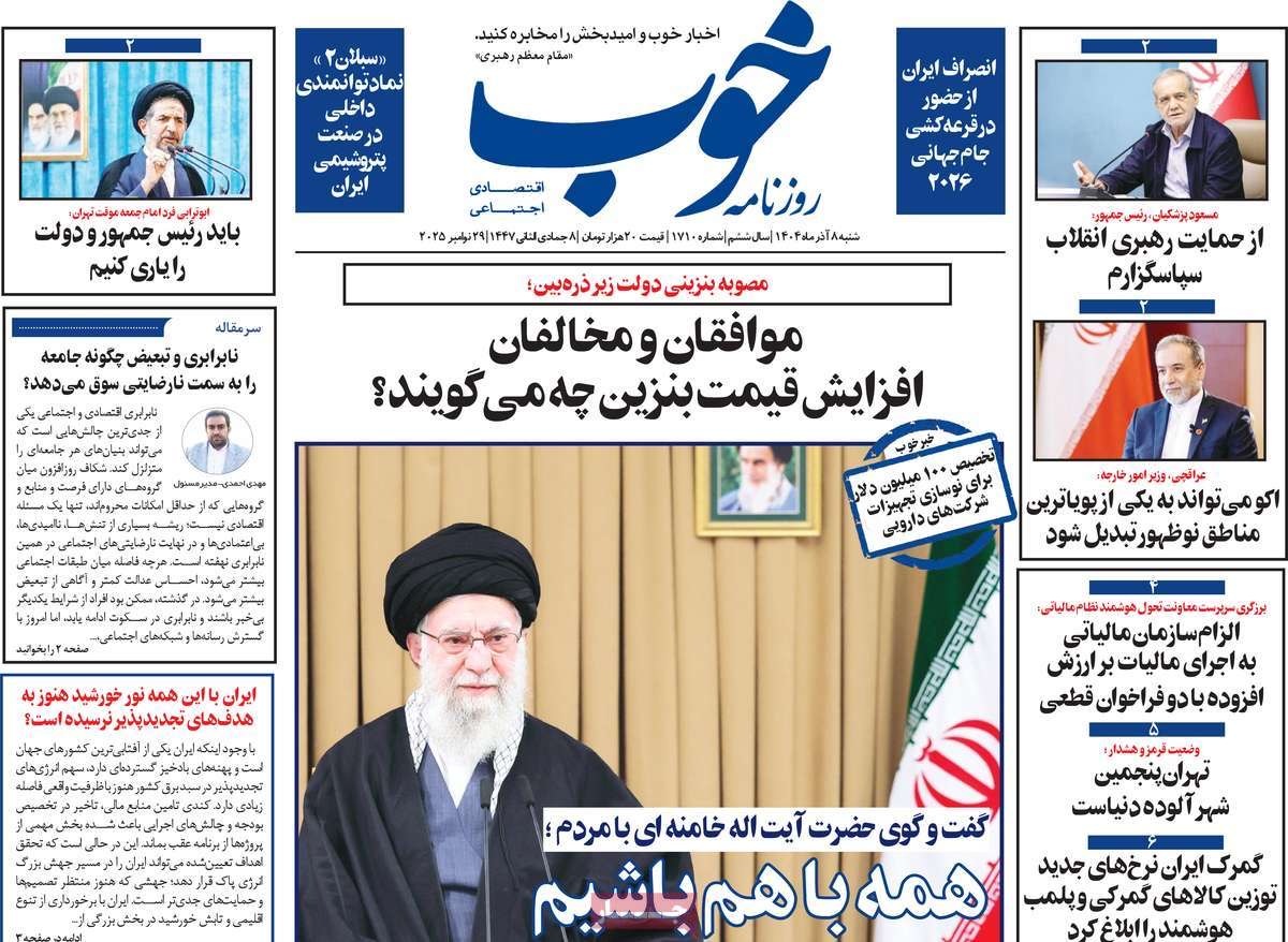 صفحه نخست روزنامههای شنبه ۸ آذر ۱۴۰۴ را که به توصیه رهبر انقلاب به تقویت ملی، پشت پرده آتشسوزی جنگل، سیم کارت سفید و فیلترینگ سیاه و مهمترین رویدادهای ورزشی پرداختهاند؛ در ادامه مشاهده میکنید.