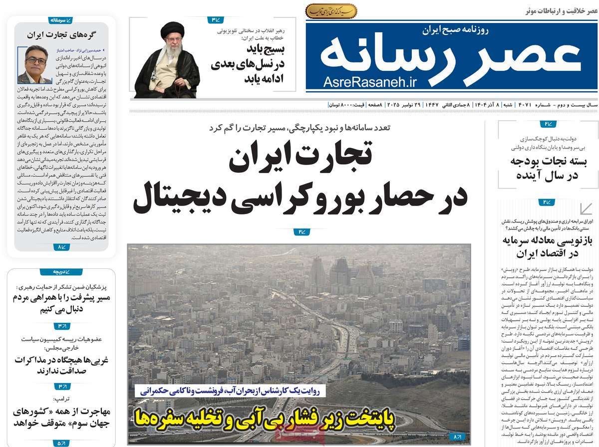 صفحه نخست روزنامههای شنبه ۸ آذر ۱۴۰۴