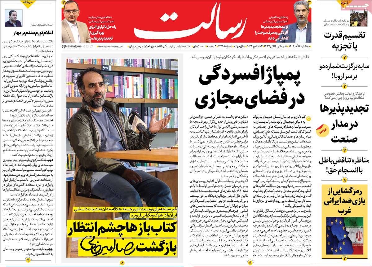 صفحه نخست روزنامههای سهشنبه ۱۱ آذر ۱۴۰۴ را که به جهش دوباره قیمت در بازار طلا و ارز، پمپاژ افسردگی در فضای مجازی، سهم خودروها در بحران آلودگی هوا و مهمترین رویدادهای ورزشی پرداختهاند؛ در ادامه مشاهده میکنید.