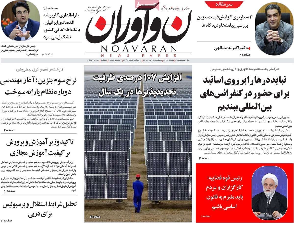 صفحه نخست روزنامههای سهشنبه ۱۱ آذر ۱۴۰۴