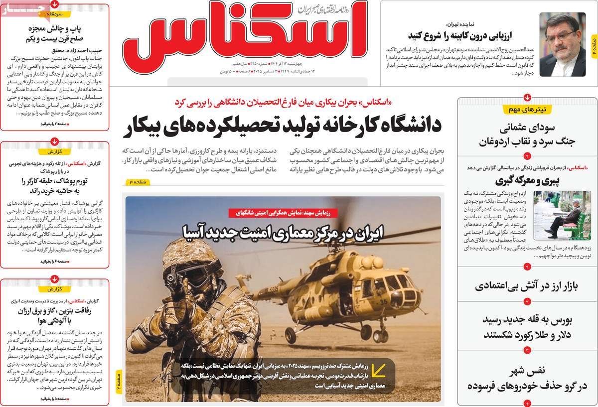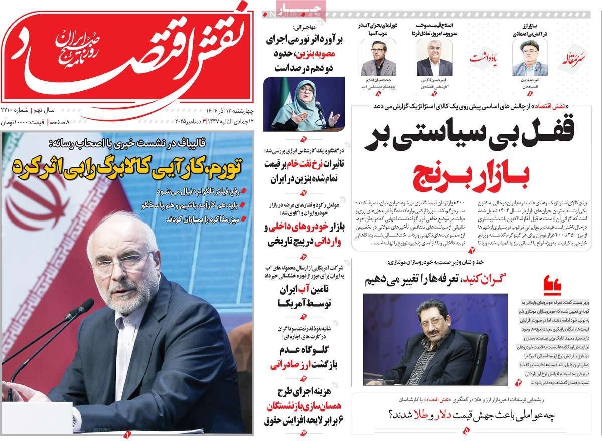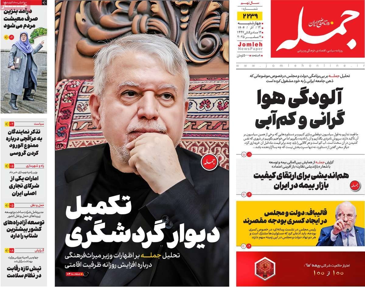 صفحه نخست روزنامههای چهارشنبه ۱۲ آذر ۱۴۰۴