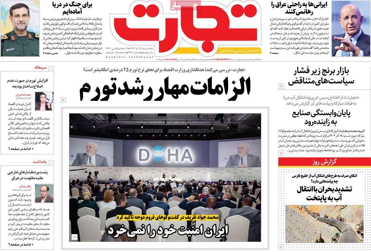 صفحه نخست روزنامههای یکشنبه ۱۶ آذر ۱۴۰۴