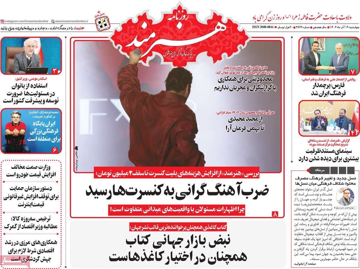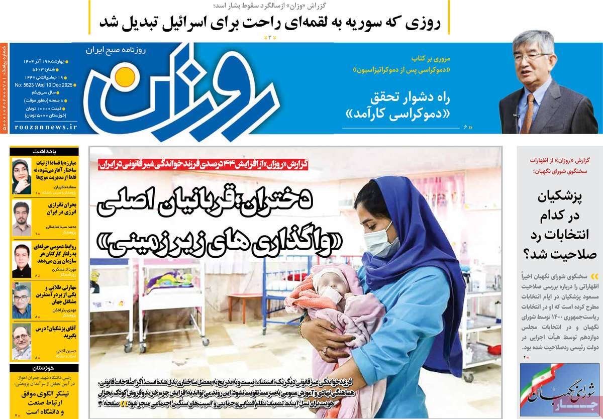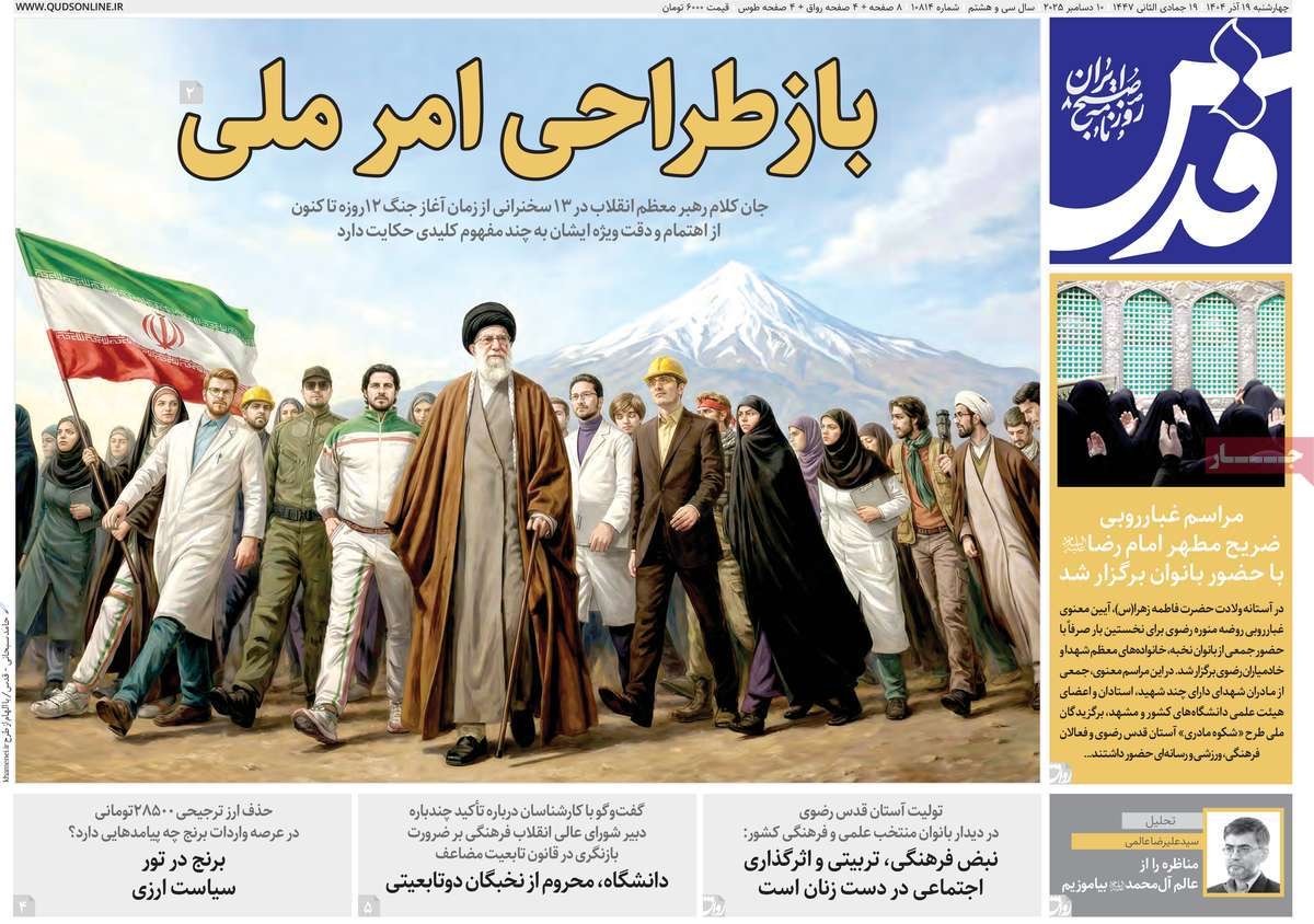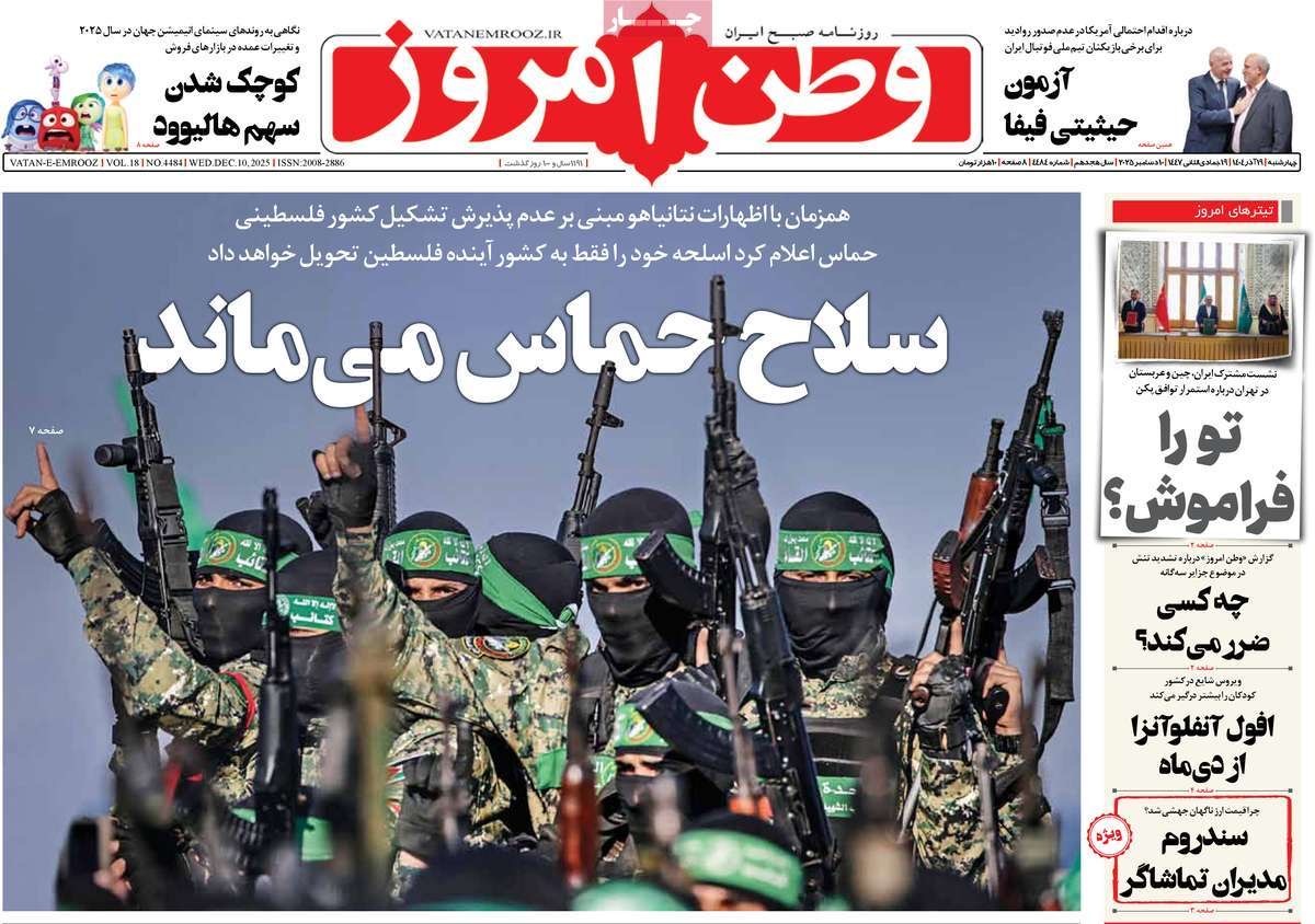 صفحه نخست روزنامههای چهارشنبه ۱۹ آذر ۱۴۰۴